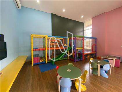 O condomínio dispõe de área de lazer com piscina, brinquedoteca, playground, sauna, quadra de esportes, espaço gourmet, salão de jogos, churrasqueira com forno de pizza, salão de festas, portaria 24 horas, elevadores, portão eletrônico, circuito interno de TV.